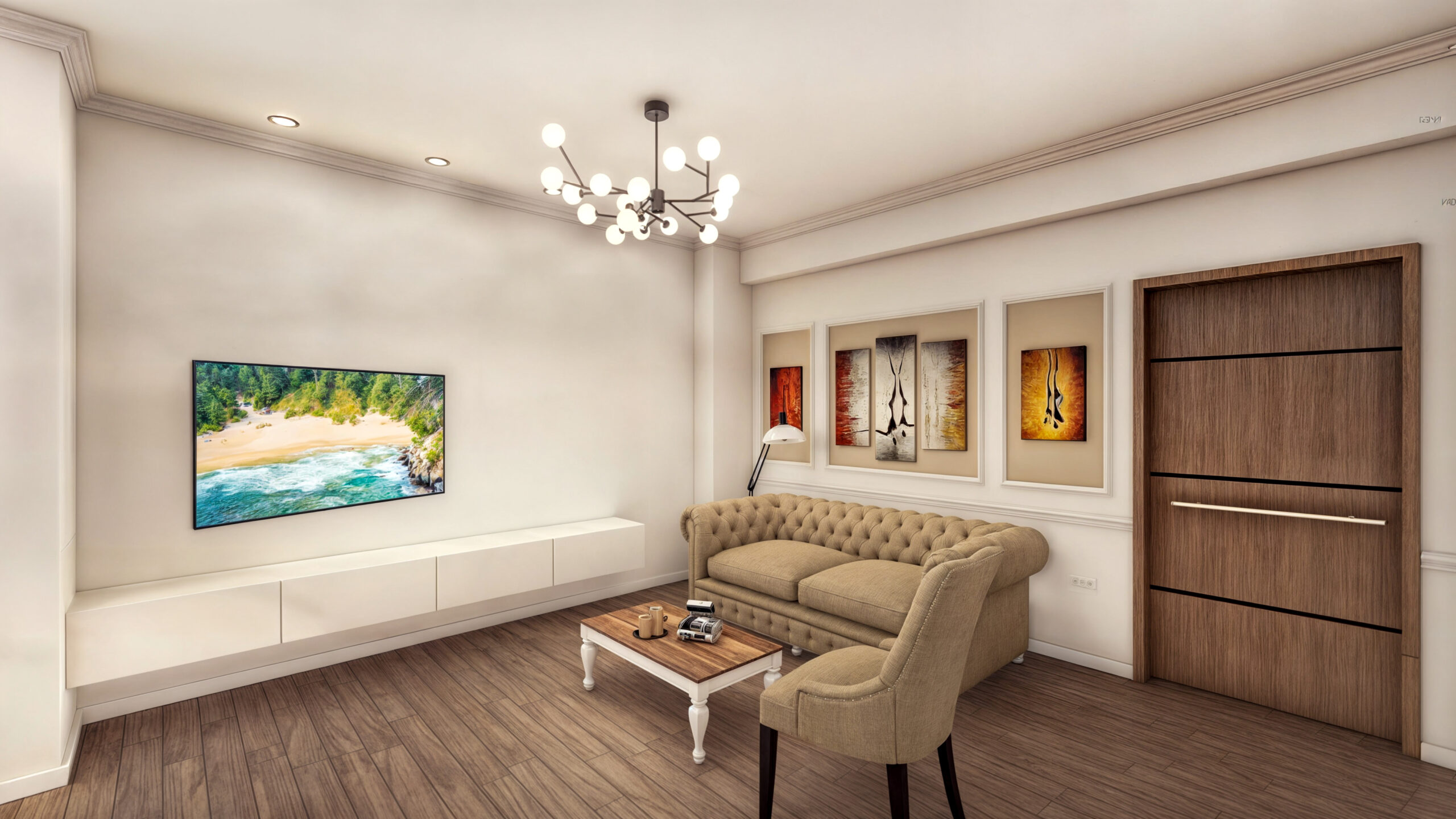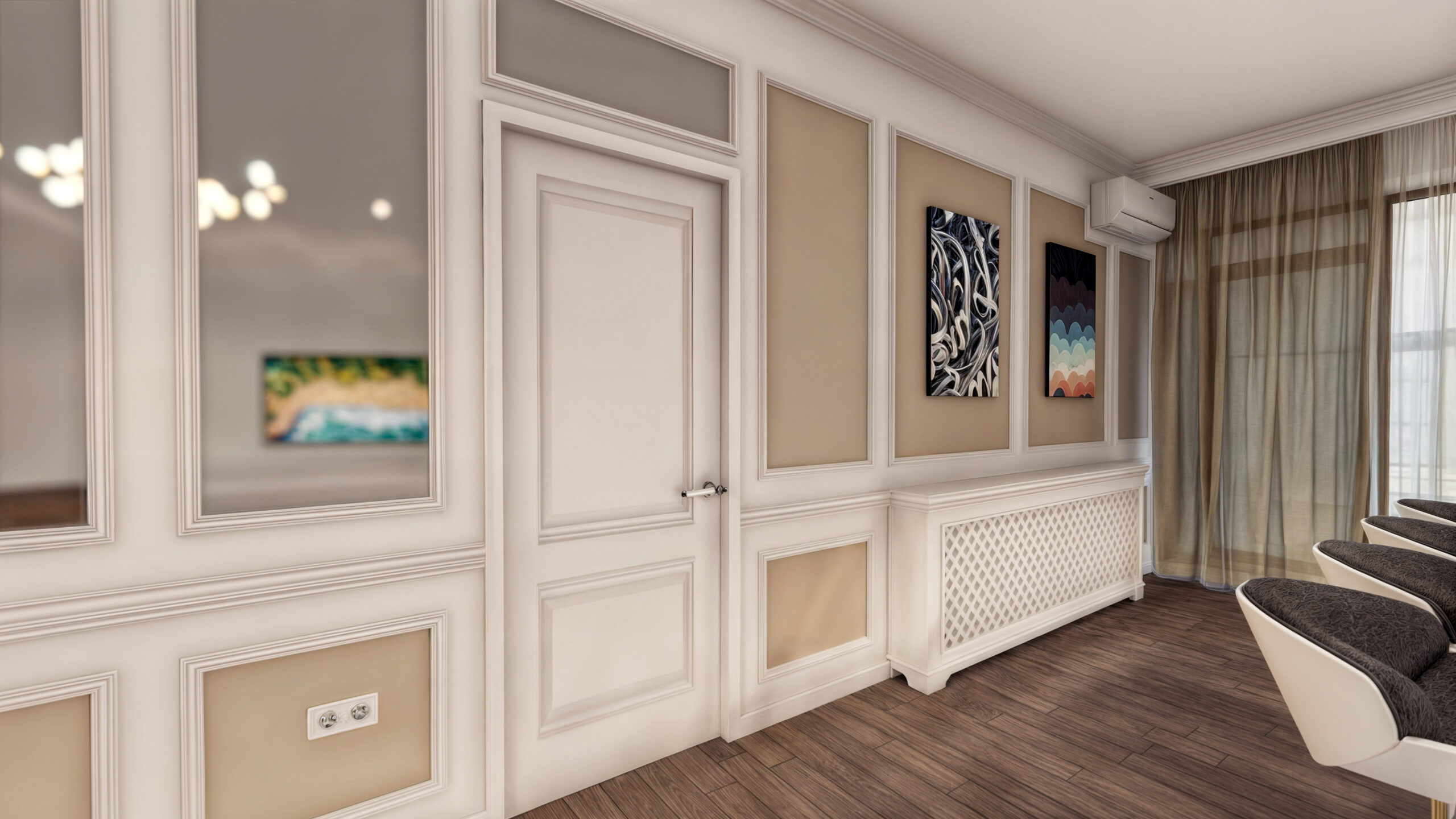 Proiectul prezentat reflectă un stil de design interior modern și elegant, ce combină elemente minimaliste cu detalii subtile și materiale premium. Întreaga amenajare este gândită să creeze un spațiu aerisit și primitor, în care predomină nuanțele neutre de bej și alb, completate de accente lemnoase și texturi variate. Fiecare zonă este bine delimitată, oferind un echilibru între funcționalitate și estetică.