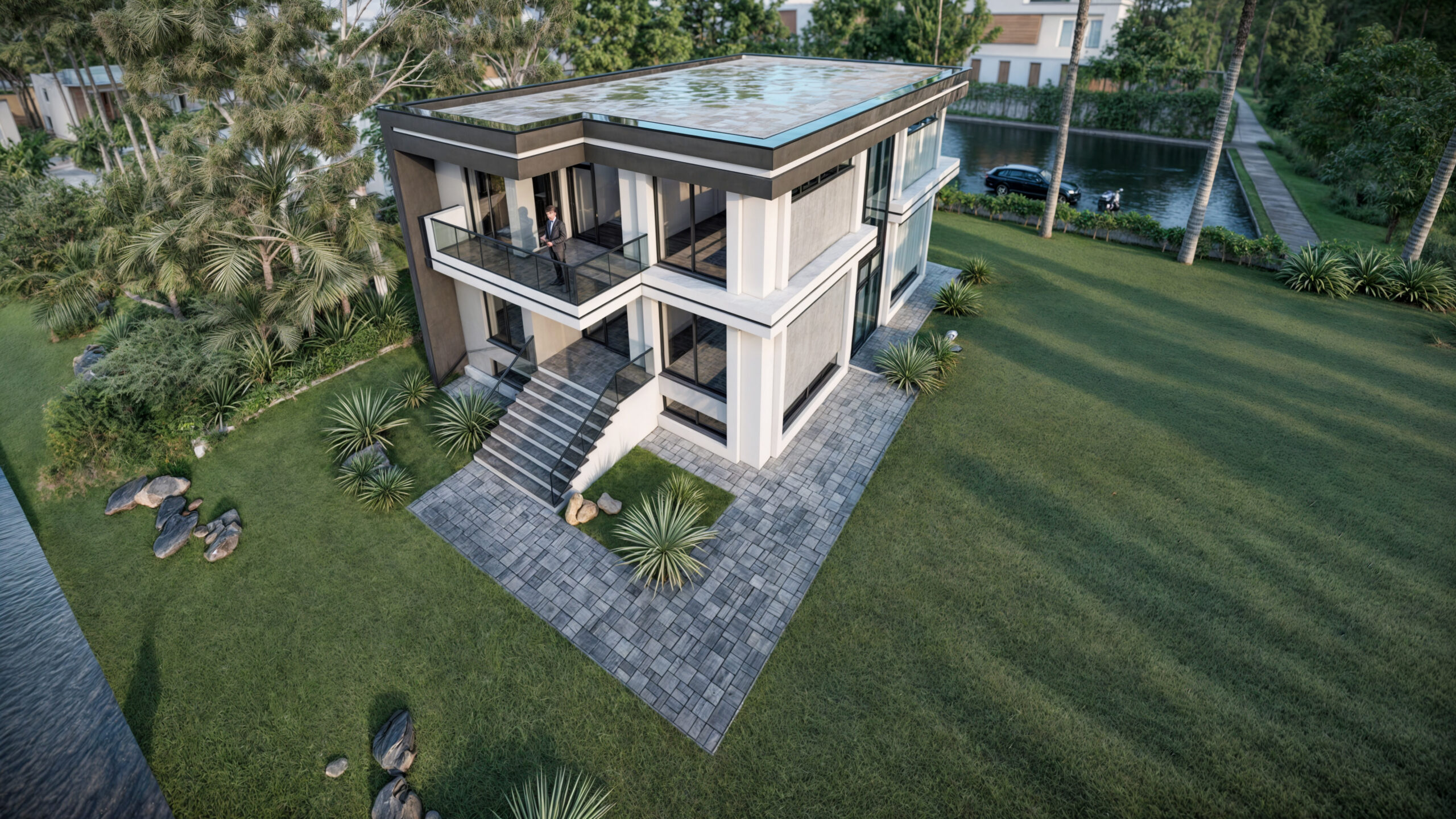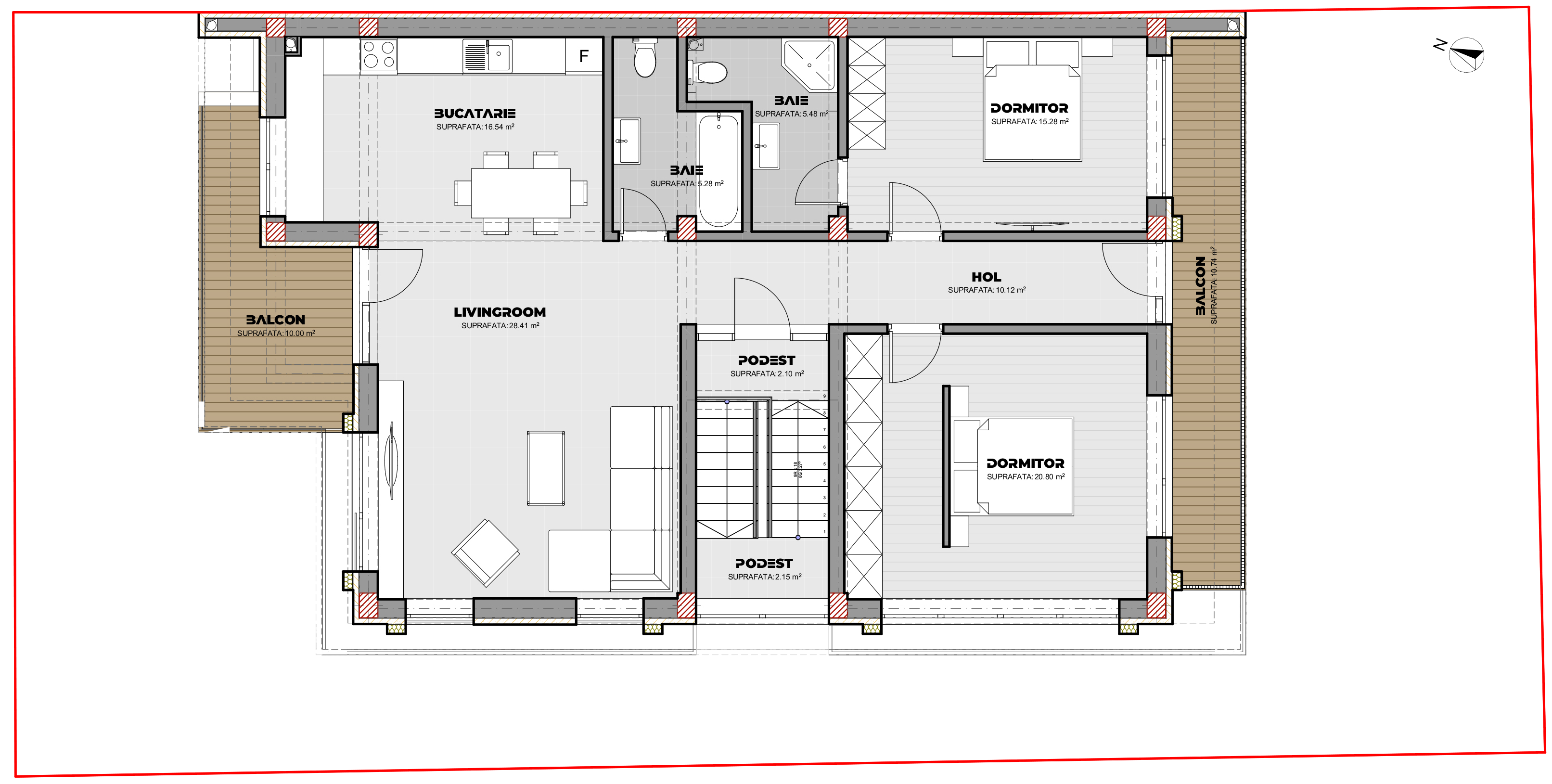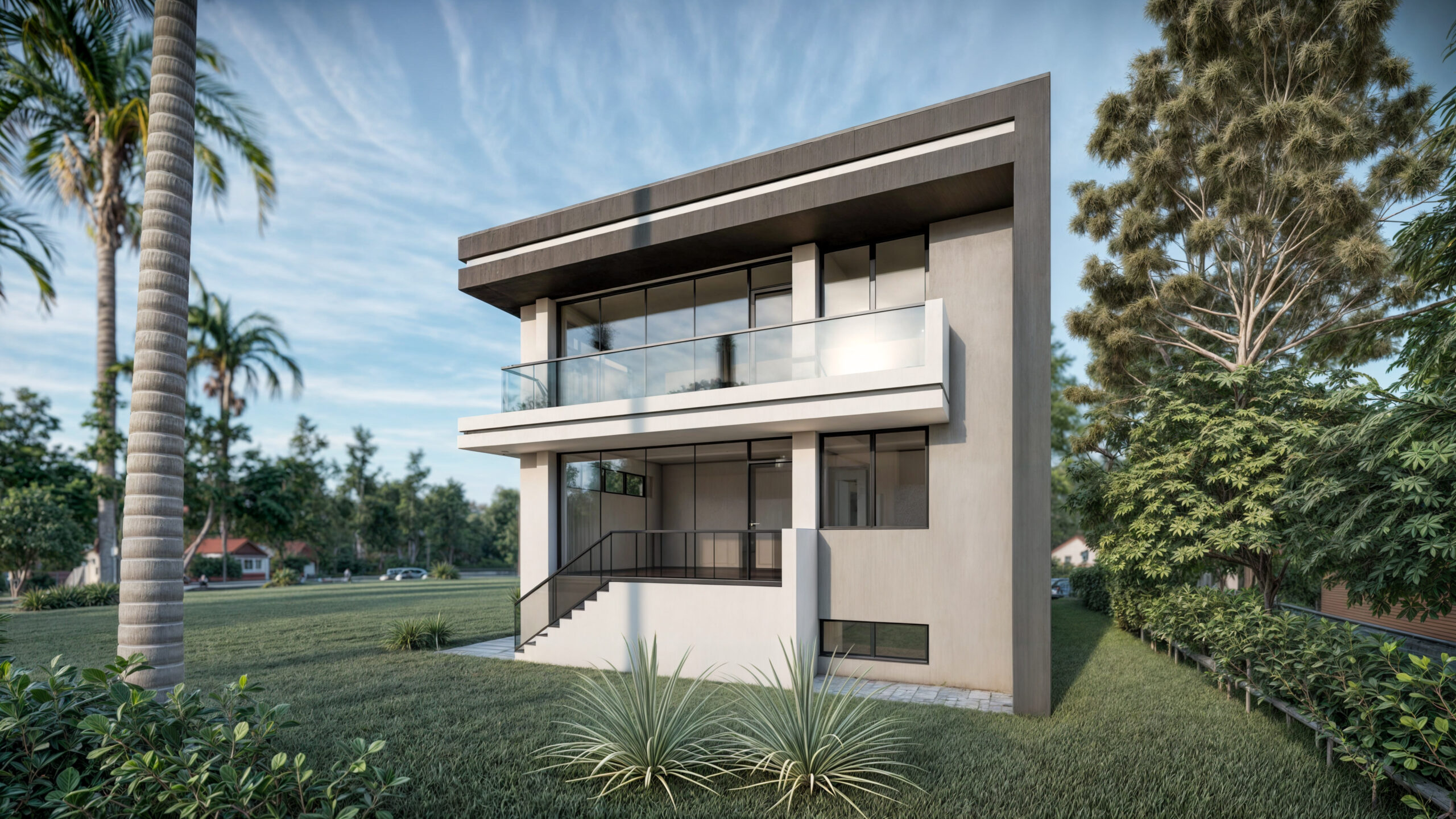 Proiectul prevede construcția unei locuințe individuale moderne, desfășurată pe trei niveluri: demisol, parter și etaj. Locuința este amplasată pe un teren de 300 mp și a fost proiectată pentru a asigura un confort optim, oferind spații locative bine organizate atât la interior, cât și la exterior. Imobilul include și spații tehnice la demisol, precum și balcoane care adaugă un plus de funcționalitate. Curtea este amenajată cu spații verzi, contribuind la un mediu relaxant pentru locatari.