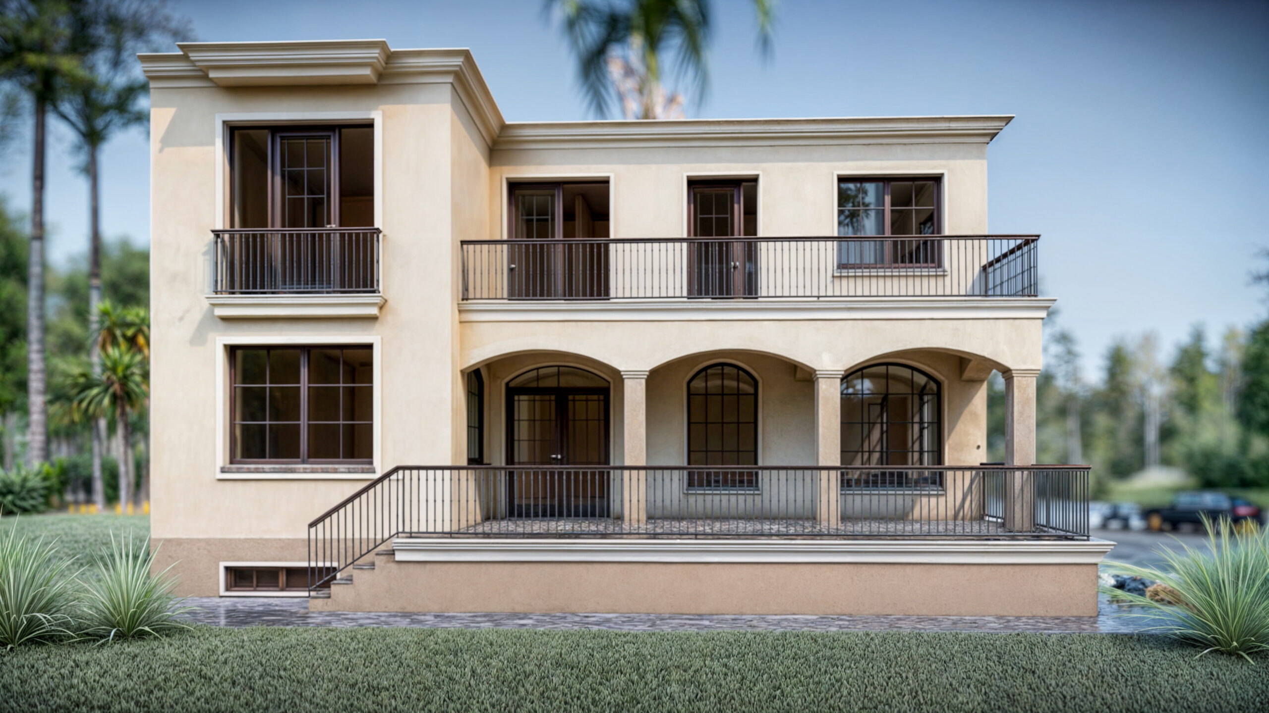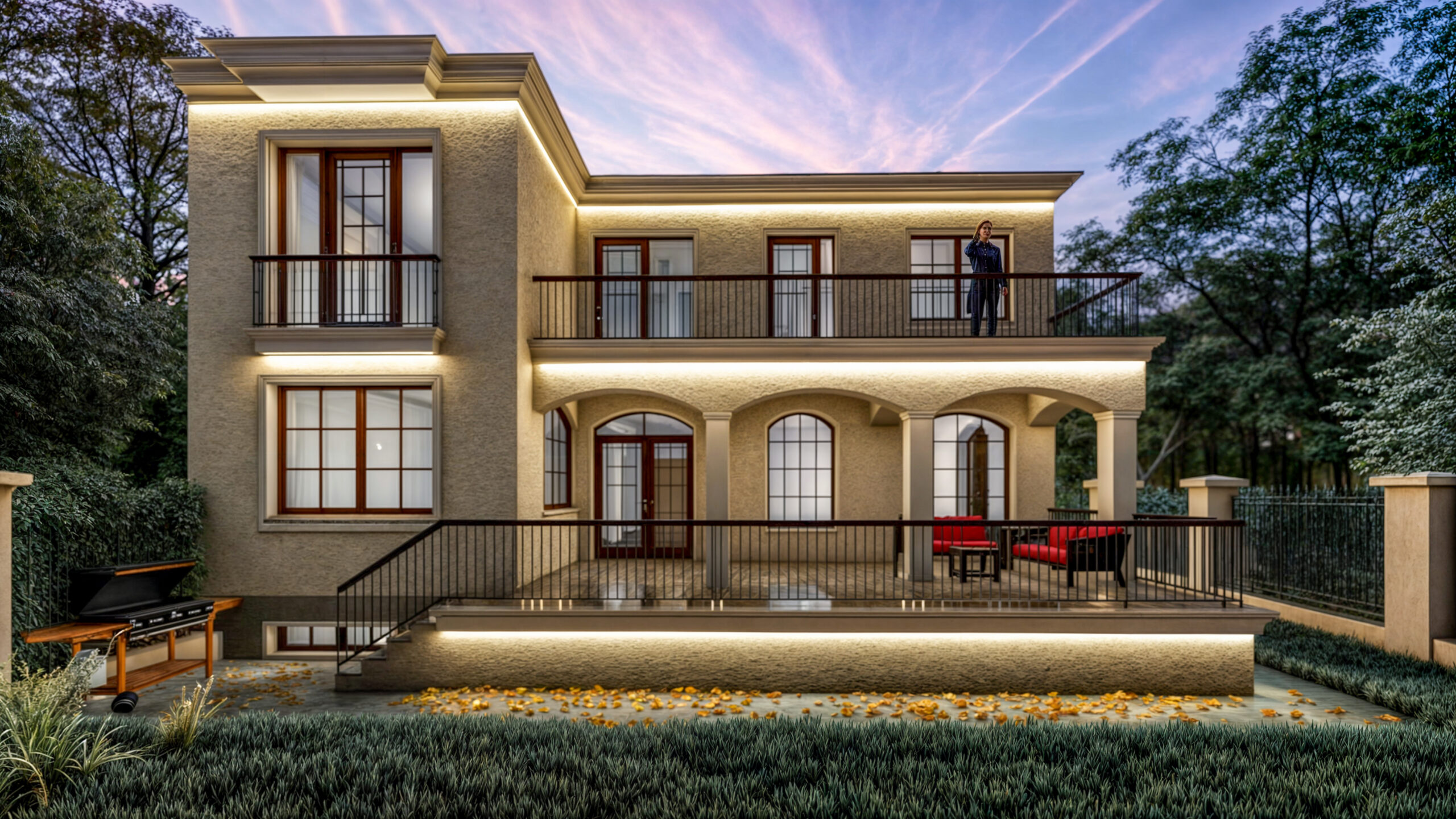 Grădina amenajată adaugă un plus de relaxare și armonie întregului ansamblu, oferind o extensie naturală a spațiilor de locuit din interior. Parcarea subterană, integrată discret în peisaj, oferă suficient spațiu pentru două mașini.