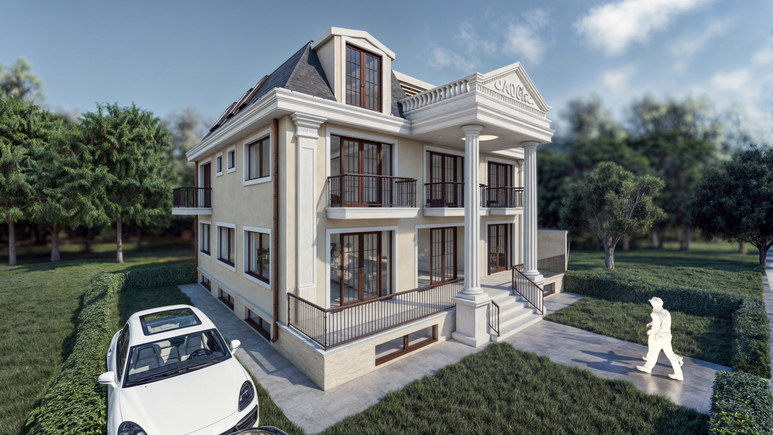 Acest proiect prezintă o locuință unifamilială modernă, dispusă pe trei niveluri: subsol, parter și etaj. Amplasată pe un teren de 500 mp, locuința oferă un spațiu efici