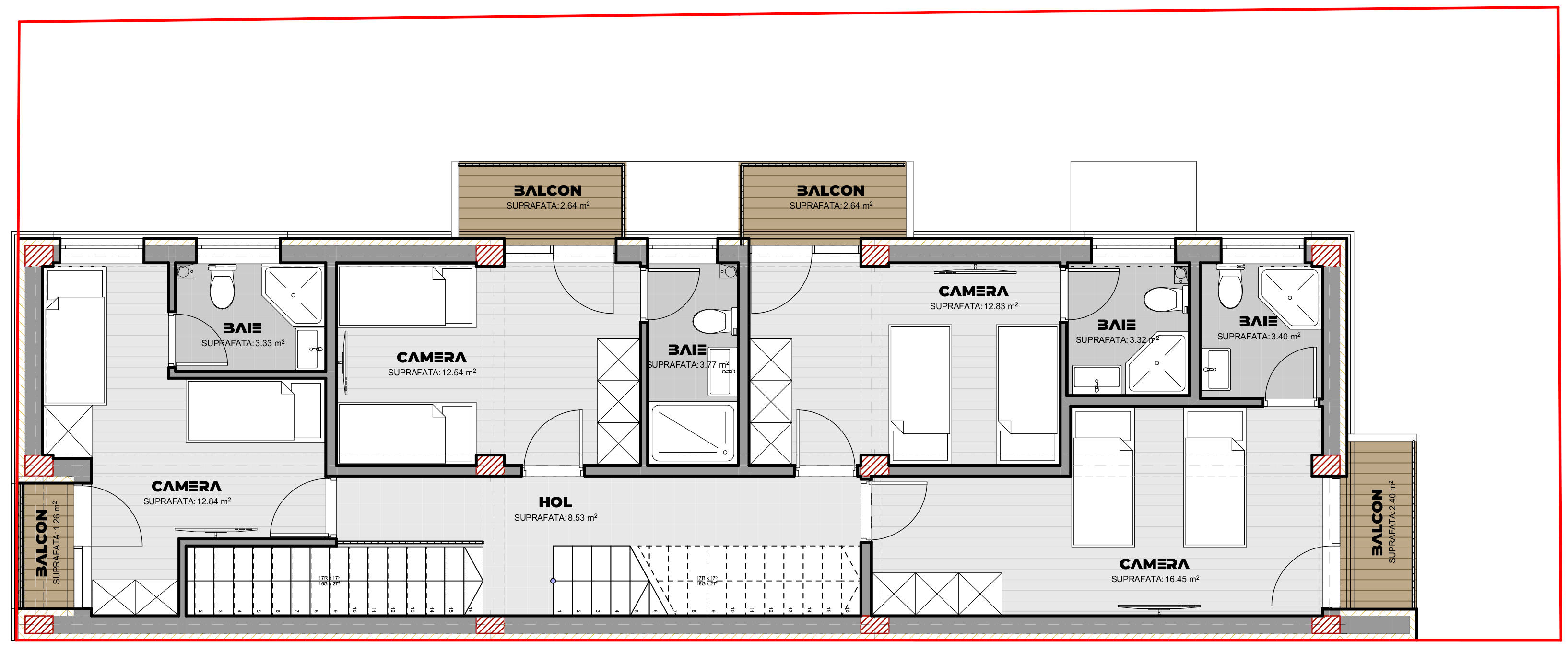 Exteriorul clădirii va combina elemente moderne, cu ferestre mari pentru a maximiza aportul de lumină naturală, și materiale de construcție durabile, care pun accent pe estetică și funcționalitate. Fațada va avea un aspect contemporan, fiind ajustată cu elemente de finisaj elegant și minimalist. În plus, terasele nou create vor oferi o priveliște plăcută asupra împrejurimilor și vor extinde zona de relaxare a locuinței.